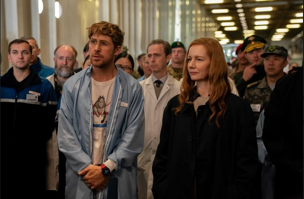The film opens in disorienting fashion: Dr. Ryland Grace (Ryan Gosling) awakens aboard the Hail Mary, a cramped, utilitarian interstellar spacecraft, light-years from Earth. He is suffering from severe amnesia—his name, his mission, even the faces of his loved ones are gone. All he has are his instincts, his rusted scientific knowledge, and a ship full of dead crewmates. As he slowly pieces his identity back together through a series of fragmented flashbacks, Grace realizes his catastrophic predicament: the Sun is being consumed by a mysterious, space-borne microorganism dubbed the “Astrophage,” which is rapidly draining its energy and dooming all life on Earth. Grace, a former molecular biologist turned disillusioned middle-school science teacher, was the last hope—a lone astronaut sent to the Tau Ceti system to find a cure or a way to stop the alien plague.